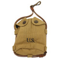 Belle reproduction de la housse de gourde estampillée JT&L 1918. Elle est vendue avec son attache en cuir et sa boucle en laiton. Intérieur en feutre épais. reproduction de très belle qualité pour collectionneurs; reconstituants ou passionnés de cette époque. Peut convenir pour un gourde WW2 US. Vendue sans la gourde et le quart.